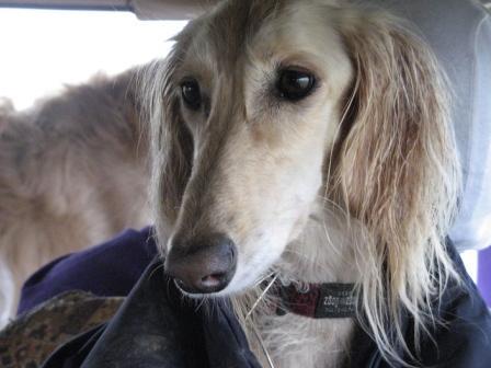 | Курточка хозяйская надета :) промокли ведь насквозь, ох уж эти гречишные поля... да еще у собачки такой колбас после скачки был - первая ведь в жизни :) |