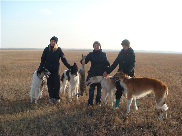 Вот мы и вернулись после долгой поездке в Украину. Дорога назад была тяжелейшая даже для меня, как пассажира. Снег, не переставая, валил от Запорожья до самой Москвы . Спасибо Гале, сдюжила все, и мы дома. Хочу поделиться впечатлениями. Хотя для меня сезон не сложился ( от начала до конца нас постоянно преследовали какие-то бесконечные травмы, растяжения, гематомы, порубанные сухожилия, еще и внезапная течка). Не получилось ни испытаться, ни в Кубке поучаствовать. Только поохотимся, поймаем, и снова что-нибудь случается. Ну что-ж теперь делать! Бывает. Звезды так встали. Из того, что видела, впечатлили работы Тираны. Блистательная, ловящая сука. Поздравления Ване и Леночке Погребским. Отличная пара сложилась у Гали Поляковой. Совсем молодой кобель Эбони Бумер показал выдающуюся резвость, что, впрочем, неудивительно при его происхождении от беговых чемпионов. Прекрасно показала себя Леди Бренда, вязкая, резвая, жадная сука. Две парные поимки в Крыму тоже вполне закономерный результат. Что касается псовых, очень понравились суки Лены Розановой. Резвые, выносливые. Показывали работу при очень дальних пусках. Понравилась работа Коффовских греев на испытаниях. А также отличную резвость на испытаниях показала питерская сука Инны Ледневой. Я пишу только о том, что видела сама. Я уверена, что были и еще отличные работы и греев и псовых, которые я просто уже не застала. В целом, я считаю, что поездка удалась. Где еще столько народу можно было собрать вместе! Дать собакам возможность и поохотиться и отыспытаться,и посостязаться. Огромное спасибо одесским устроителям, Юре Юрицыну, особенно. Лене Розановой, которая в его отсутствие организовала и прием, и размещение народа. А некоторые накладки всегда бывают. Как же без них! |