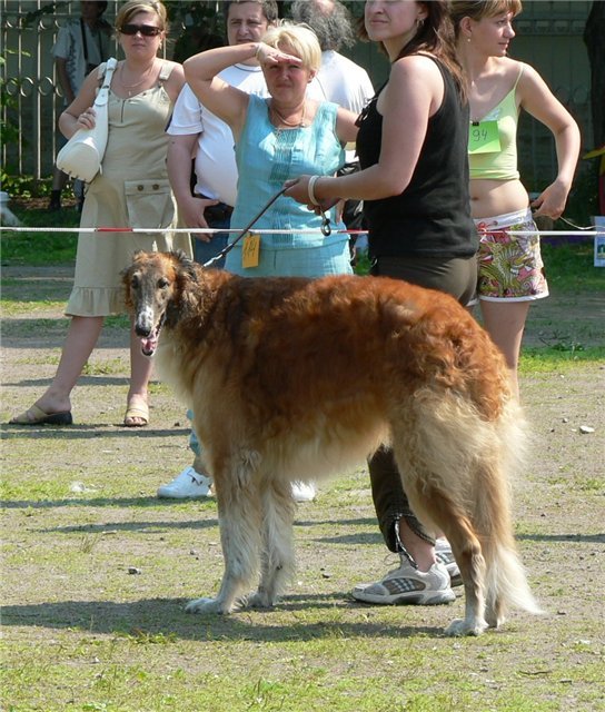 Поскольку мы вернулись к полово-пегому окрасу, то очень хочется разместить здесь фотографию Играй Рюрика 2915/02,р.09.07.01г. от ИГРАЙ КОРСАРА Ясютиной В.В. и Ч.БОРЗОЙ РОМАНОВ С АНДРОМАХИ 2754/02 1д.2ст по лисице,1д-"ст по лисице в своре,1д-2ст. по з/р,1-2ст. поз/р в своре и несколько трешек по русаку. Владелец В.Ясютина г.Минск Беларусь. Он неоднократно первенствовал на охотничьих рингах, имел титул ЛПП , вообще его владелица очень любит его выставлять и побеждать на всякого рода выставках. Это его фотография сделана в субботу Ольгой Макаренко в Минске на выставке. ЛПП.Картинка
