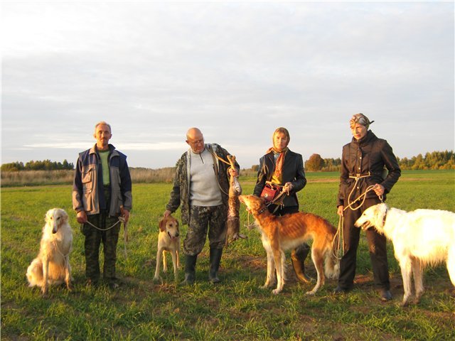 А почему бы нет? Первые в этом сезоне испытания были проведены в Костромской области 19-20 сентября (Погорелки). Участвовало 12 псовых из Костромы, Вологды, Ярославля и Москвы. За два дня поднято и поймано(!) 2 русака и работали по двум лисам, которым удавалось уйти в укрытия. Работа по первому русаку не расценена, был подпуск и зайца просто "порвали на куски". За поимку второго русака дипломы 3 степени с поимкой получили Шалость О.С. Бычковой (Вологда) и Цефей Тихова Н.А. (Вологда) Картинка