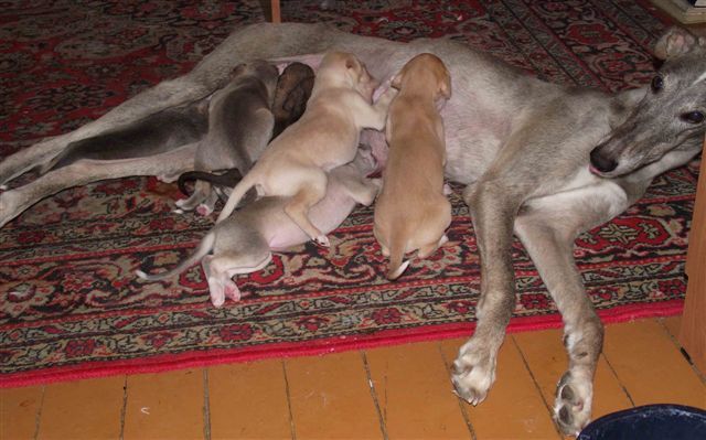 Сообщили о новом помете хортых - у Юры Недугова 7 937 541 79 17 и 8 844 446 57 28. Ласта родила десять - девять парней и одну девицу. На скорую руку даю начало родословной - дальше заполню днями ![]() Как всегда, если щелкнуть по картинке, откроются другие фото Сука роскошная - дай бог, чтобы дети не хуже были |